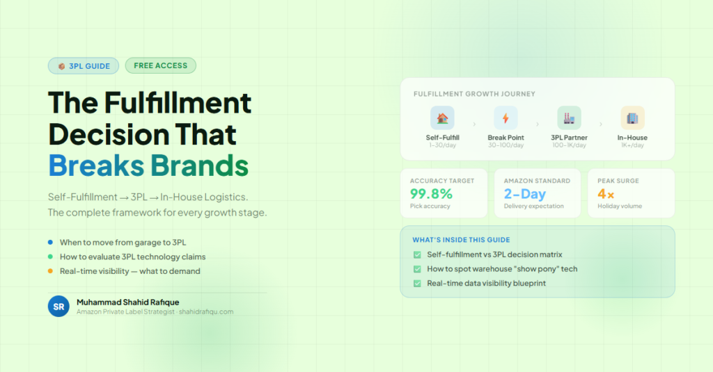The 3PL & Fulfillment Guide Every Brand Needs | Shahid Rafique Muhammad Shahid Rafique Amazon Private Label Strategist · $50K–$500K Brands Visit Website → Free Guide – Free Access The Fulfillment DecisionThat Makes or Breaks Your Brand Self-fulfillment vs 3PL vs in-house — the complete guide to warehousing and logistics strategy for e-commerce brands at […]